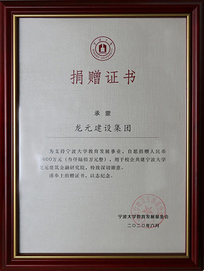 龍元捐贈寧波大學(xué)3600萬元,共建“寧波大學(xué)龍元建筑金融研究院”